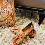 Színes bőr és szövet mokaszin. Ezt az elegáns női mokaszint a felső részen található bojtok teszik még egyedibbé. A minta és a bojt kombinációja egyedi fúziót hoz létre, amely kiemeli az Maury modell egyedülálló dizájnját.